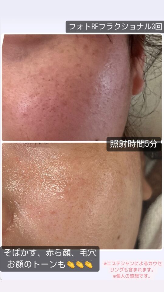 【実例公開】フォトRFフラクショナル3回でこんなに変化が!そばかす・赤ら顔・毛穴にお悩みの方へ