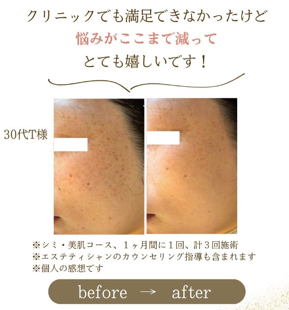 Tさまからは「クリニックでも満足できなかったけど、悩みがここまで減ってとても満足しました!」と嬉しいお言葉をいただきました。