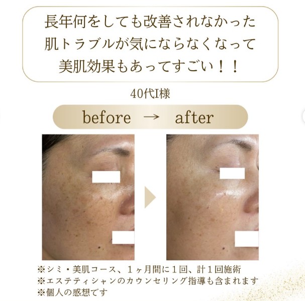 しかし、コアの「シミ・美肌コース」をたった1回受けていただいた結果…
